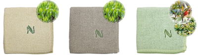 | ゴールド(緑茶) グレイ(烏龍茶) グリーン(くちなし+藍) |