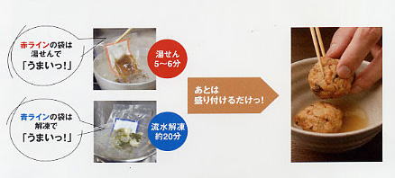 調理師が腕をふるったおそうざいの数々、 鮮度も味もそのままに、冷凍でお届けします。 ![]() 「料亭の味 膳」は、愛知県の三河湾漁港近郊ほか、 すべてを一流料亭直営工場で生産加工。 料理の技である、出汁と下ごしらえを徹底追及した調理済食材です。 ● 「壱の膳〜六の膳」 6セットを¥5,000にて、お届けします。 |
